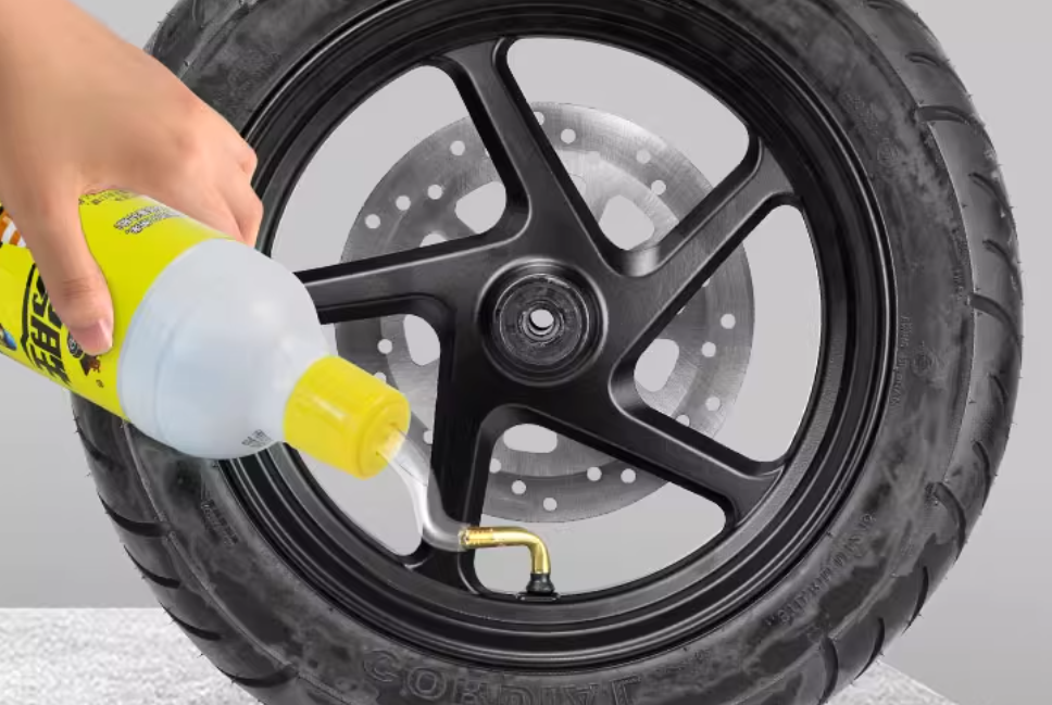 操作方法: 将气门芯拧下,把补胎液从气门嘴注入轮胎,然后重新装上气门芯并为轮胎充气。慢速骑行几分钟,让液体在离心力作用下均匀分布并堵住漏点。